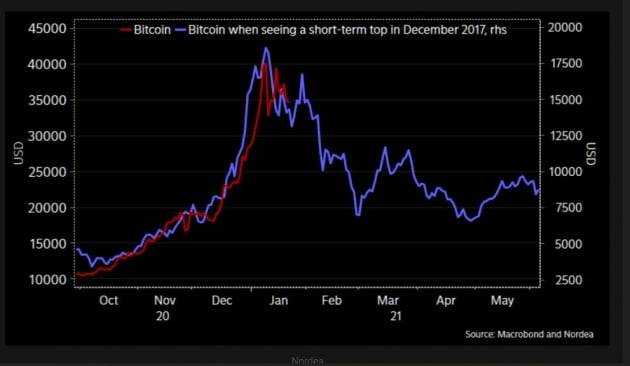 일부에선 최근 급등 상황이 지난 2017년과 유사한 모습을 보이고 있다는 점에서 큰 폭으로 하락할 가능성을 제기하고 있다.