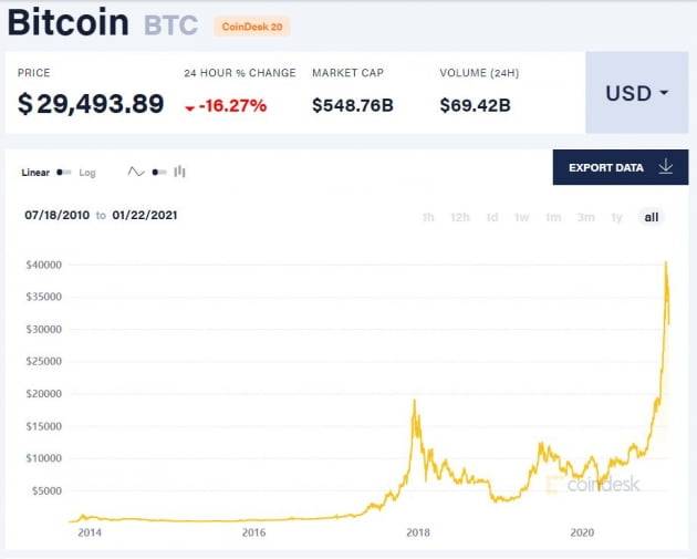 단기 폭등한 비트코인은 최근 커다란 변동성을 보여왔다. 조 바이든 미국 행정부의 재닛 옐런 재무장관 지명자가 지난 19일“가상화폐가 테러리스트들의 자금 세탁에 악용될 우려가 있다"며 규제 필요성을 밝힌 것도 부정적 영향을 줬다.