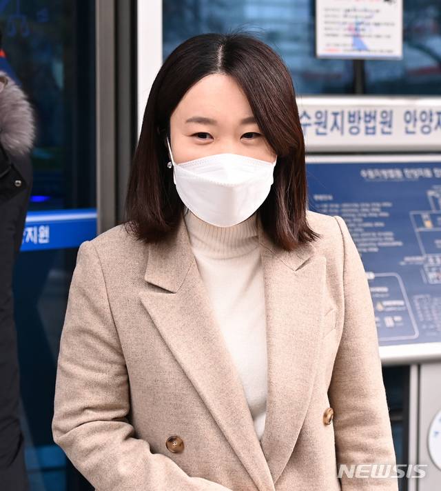 [안양=뉴시스] 김종택기자 = 공직선거법위반혐의로 기소된 이소영 더불어민주당 (의왕과천) 의원이 22일 오전 경기도 안양시 동안구 수원지방법원 안양지원에서 열린 선고공판에서 벌금 80만원을 선고받은 뒤 법원을 나서고 있다. 2021.01.22.