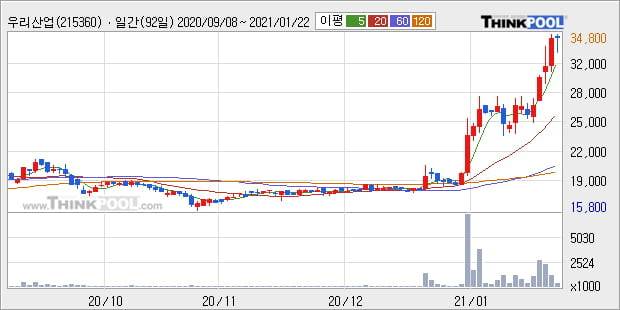 '우리산업' 52주 신고가 경신, 단기·중기 이평선 정배열로 상승세