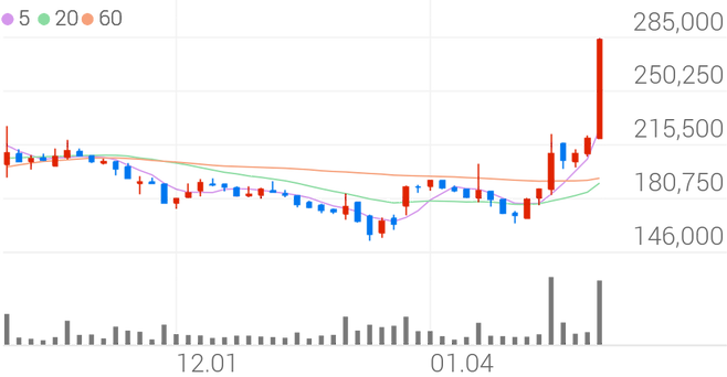 셀리버리(268600)가 상한가를 기록했다. 전일 대비 29.97% 상승한 285,800원에 거래되고 있다.