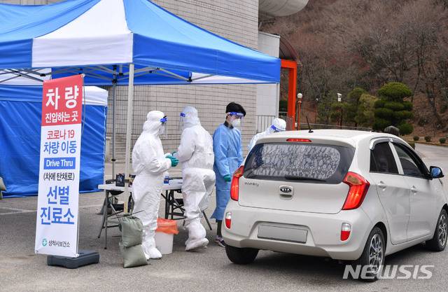 [삼척=뉴시스]장경일 기자 = 강원 삼척시에서 최근 코로나19 확진자가 잇따라 발생함에 따라 22일 문화예술회관 앞 광장에 설치된 선별진료소에서 선제 진단검사가 실시되고 있다. (사진=삼척시청 제공) 2021.01.22. photo@newsis.com