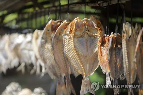 epa08956943 Drying fish are displayed for sell by a street vendor in Lhok Seudu, Aceh Besar, Indonesia, 20 January 2021 (issued 22 January 2021). According to the Indonesian Chamber of Commerce and Industry, there is a big expectation that the distribution of vaccines in the country will boost the economy recovery in business climate, including in the fisheries and marine sectors. EPA/HOTLI SIMANJUNTAK