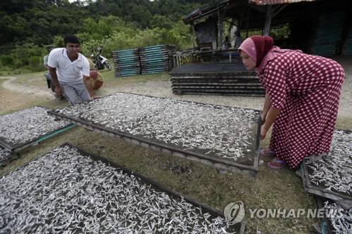 epa08956937 Workers dry fish to make dried fish products in Lhok Seudu, Aceh Besar, Indonesia 20 January 2021 (issued 22 January 2021). According to the Indonesian Chamber of Commerce and Industry, there is a big expectation that the distribution of vaccines in the country will boost the economy recovery in business climate, including in the fisheries and marine sectors. EPA/HOTLI SIMANJUNTAK
