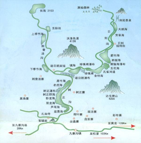 | ▲ 지우자이거우 관람 지도 ‘Y’자 형태로 된 지우자이거우는 전용버스를 타고 관람하게 된다. |