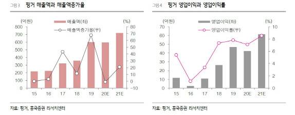 핑거는 금융 플랫폼, 솔루션, 수수료(CMS) 등 금융 비대면 채널 전용 플랫폼을 제공하는 기업으로, 국내 최다 금융권 개인 스마트뱅킹 구축 경험을 가지고 있다. 핀테크 산업 성장과 함께 신규서비스를 확대하고, 본인신용정보관리업(마이데이터) 사업 도입으로 인한 성장 기대가 높다. 최종경 흥국증권 연구원은 “핀테크 산업은 현재 마이데이터, 전자결제 서비스를 중심으로 고성장 중이다”며 “핑거의 자회사인 ㈜핀테크를 통해 마이데이터 예비허가를 받은 것도 긍정적인 부분”이라고 진단했다.