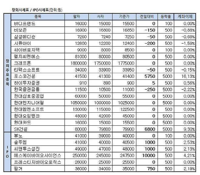 [표]장외주식 거래현황(1/22)