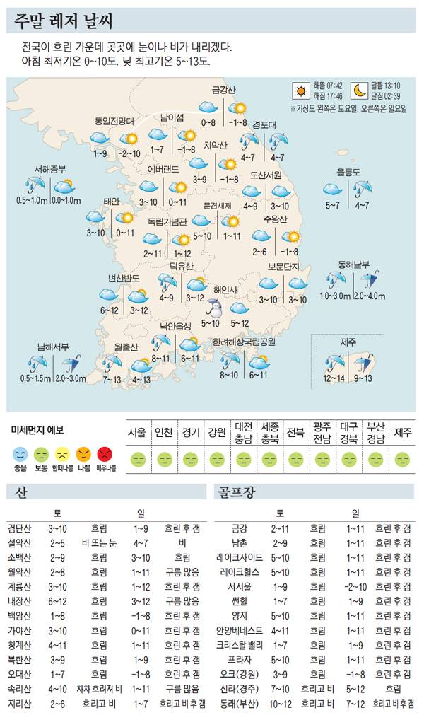[표] 주말 레저 날씨 (1월23일~1월24일)