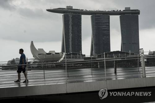 epa08957094 A man walks over a bridge across the Marina Bay Sands hotel in Singapore, 22 January 2021. Singapore's economy is expected to rebound four to six per cent in 2021 following its worst recession due to the economic fallout caused by the Covid-19 coronavirus pandemic EPA/WALLACE WOON