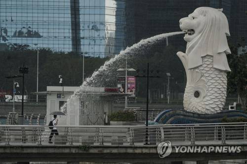 epa08957096 A man holding an umbrella walks past the Merlion statue in Singapore, 22 January 2021. Singapore's economy is expected to rebound four to six per cent in 2021 following its worst recession due to the economic fallout caused by the Covid-19 coronavirus pandemic EPA/WALLACE WOON