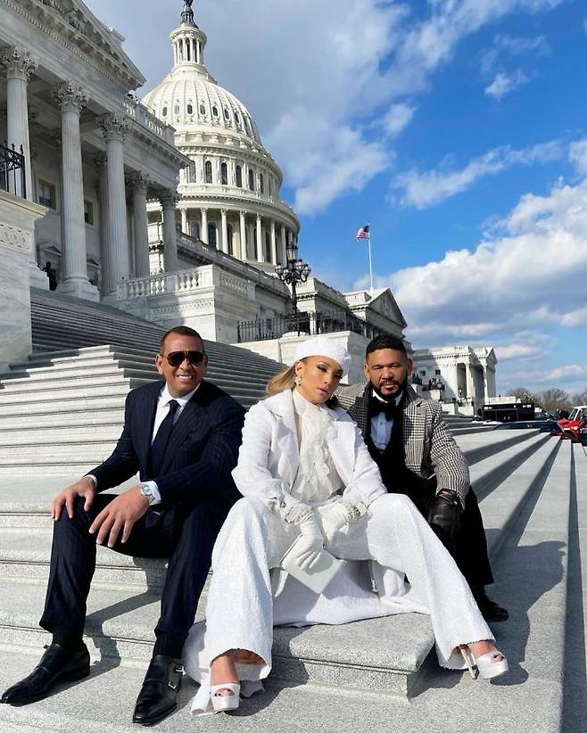 취임식에선 제니퍼 로페즈의 ‘아름다운 미국’과 ‘이 땅은 여러분의 땅’ 열창도 빛났어요. 라틴계인 제니퍼 로페즈는 공연 중간 스페인어로 “모두에게 정의를!”이라고 외치기도 했어요. 인종간의 분열이 아니라 화합을 염원하는 미국 국민들의 간절한 바람을 대변한 것 아닐까요? 참, 제이로는 샤넬 2020/21 레디투웨어 컬렉션의 화이트 컬러 판타지 트위드 코트를, 2019/20 컬렉션의 화이트 시퀸 팬츠와 실크 블라우스를 매치 했어요. 이어링과 브레이슬릿도 모두 샤넬.