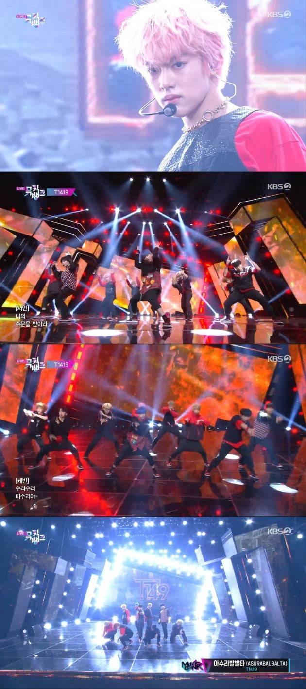 T1419는 22일 KBS2 '뮤직뱅크'에 출연해 데뷔곡 '아수라발발타(ASURABALBALTA)'를 선보였다.