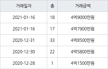 [이 기사는 조선비즈와 아티웰스가 공동으로 개발해 서비스하는 로봇 기사입니다.]국토교통부 실거래가 공개시스템에 따르면 지난 2021년 1월 16일 인천광역시 남동구 구월동 구월롯데캐슬골드아파트 18층 전용면적 83㎡형이 4억9000만원에 거래됐다.