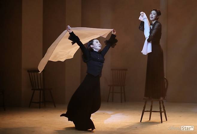 22일 오후 서울 중구 정동극장에서 열린 2021 정동극장 뮤지컬 <베르나르다 알바> 드레스 리허설에서 출연배우들이 시연을 하고 있다. 베르나르다>
