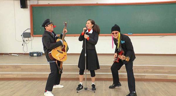 밴드부 송지효, 하하, 양세찬은 그 당시 유행했던 옆머리와 형형색색 브릿지 머리를 붙이고 등장해 웃음을 유발했다. 송지효는 복고풍 파마와 양갈래까지 완벽 소화하며 ‘런닝맨’ 외모 서열 1위의 면모를 보여줬다. 또 이들은 통기타까지 치며 역대급 불협화음 무대로 현장을 폭소케 했다. 댄스부 김종국, 지석진, 전소민은 학창 시절 실제 댄스부였던 김종국을 중심으로 현란한 춤사위를 선보여 분위기가 한껏 달아올랐다.