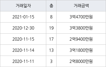 같은 기간 집계된 전용면적별 평균 실거래가격을 보면 △59㎡ 2억81만원 △73㎡ 2억6172만원 △84㎡ 3억315만원 등이다.