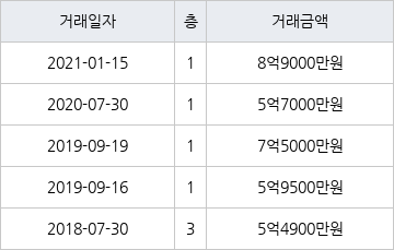 국토교통부 실거래가 공개시스템에 따르면 지난 2021년 1월 15일 부산광역시 해운대구 중동 해운대힐스테이트위브 1층 전용면적 114㎡형이 8억9000만원에 거래됐다. 해당 아파트의 동일 면적형 기준으로 역대 최고가격이다. 직전 최고가 기록은 지난 2020년 7월 30일 5억7000만원에 거래된 물건이다.