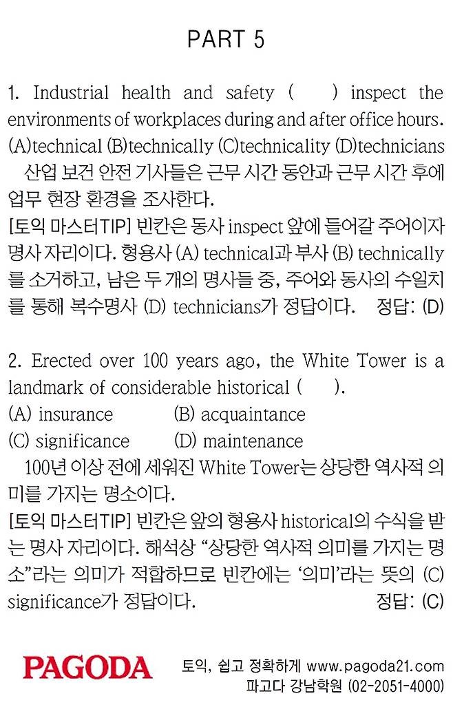 [파고다 강남 스타토익 RC유나신] PART 5