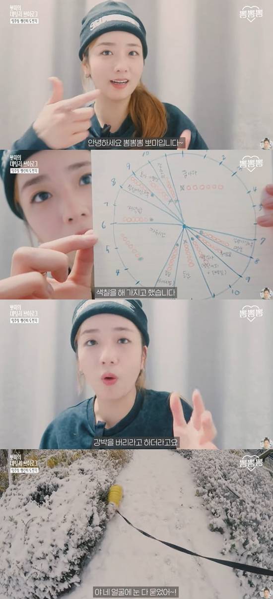 보미는 본인이 직접 만든 24시간 계획표를 공개했다. 이어 보미는 "우선 시간표를 이렇게 만들었다. 24시간으로 표시했고 생각보다 실패한 것이 많다"며 "실패한 것은' X'표시를 했고 내가 해낸 목표들은 색칠을 해뒀다. 하지만 못한 게 더 많다"라고 덧붙였다.
