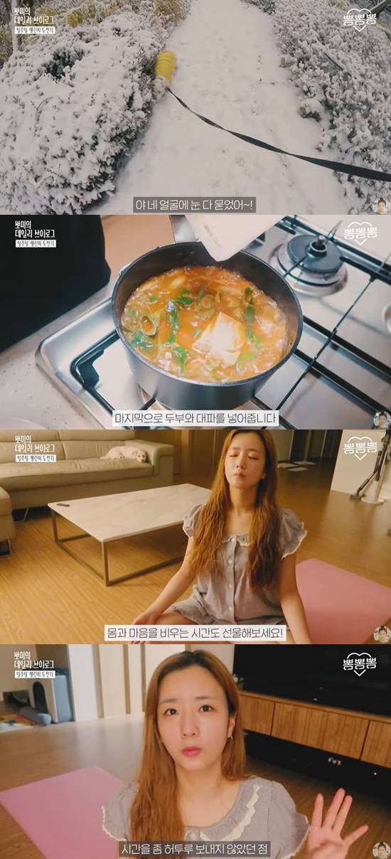 이어진 영상에서 보미는 아침 일찍 일어나 차분한 장작 소리를 들으며 독서를 하는 모습을 보여줬다. 이어 반려견 설탕이와 산책을 나가고 공민정과 함께 등산을 하기도 했다.