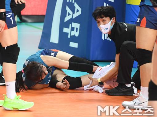 강소휘 '발목 꺾여 병원 이송' [MK포토]