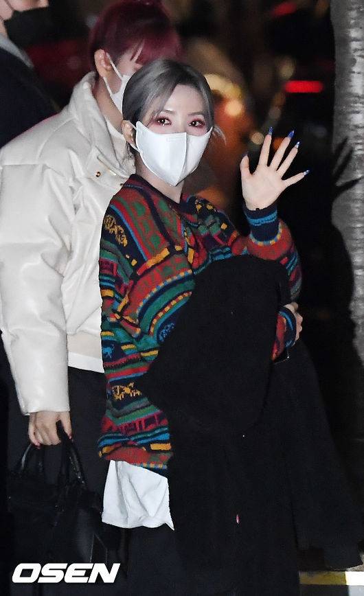 (여자)아이들 소연이 차에서 내려 방송국으로 향하며 인사하고 있다. / rumi@osen.co.kr