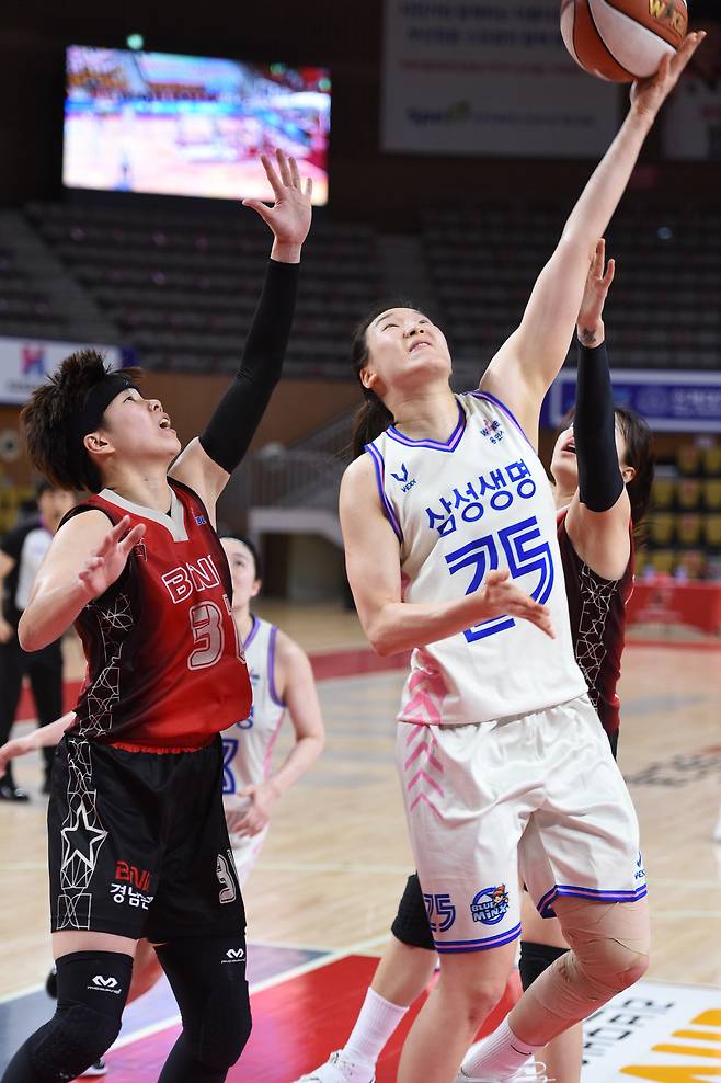 삼성생명은 22일 부산 스포원파크 BNK센터에서 벌어진 2020~2021 여자 프로농구 정규리그 BNK 썸과의 경기서 57대52로 이겼다.
