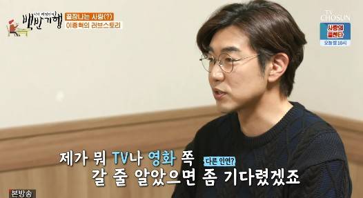 “부인이 미인이라는데?”라는 허영만의 물음에 이종혁은 “좀 미인인 편이다”고 털어놨다. 이어 아내와의 만남을 묻는 허영만의 질문에 “아내는 제가 연극 배우 시절 공연을 보러 온 관객이었다. 그전에는 돈을 잘 안 썼다. ‘오빠 돈 없다’며 얻어먹고 살았다. 그런데 아내한테는 그래도 없는 살림에 있는 척 했다. 데이트 비용을 감당하다 못해 ‘안되겠다, 결혼하자’라고 해 결혼하게 됐다”고 밝혀 웃음을 자아냈다. 이어 “제가 TV나 영화 쪽 갈 줄 알았으면 좀 (다른 인연을?)기다렸을 것 같다”고 능청을 떨었다.