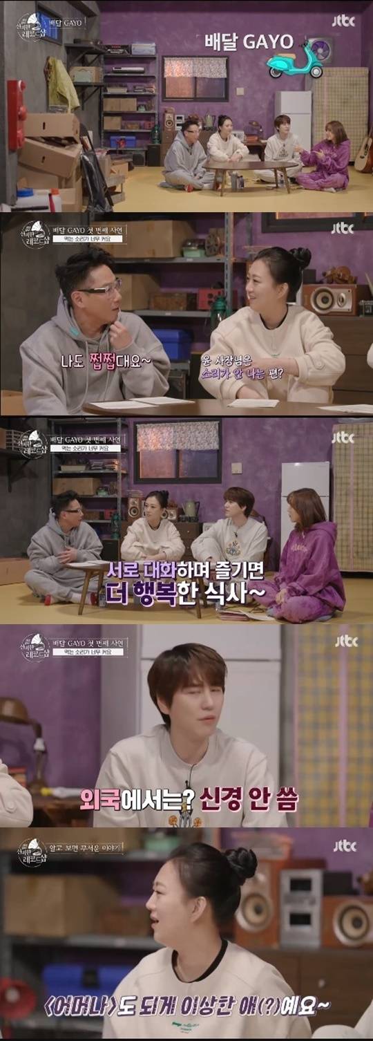 1월 22일 첫 방송된 JTBC 신규 음악 토크쇼 '배달gayo-신비한 레코드샵'에서는 음악장인 4MC 윤종신, 장윤정, 규현, 웬디가 위로송을 배달했다.