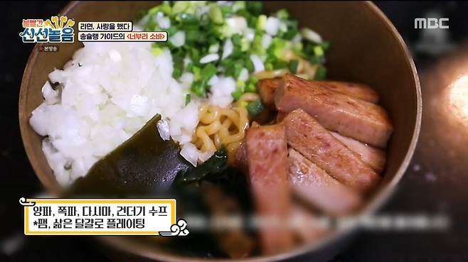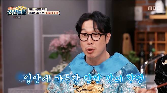 이날 송윤형은 일본 '아부라소바'에서 착안한 '너부리소바'로 도전장을 내밀었다. "생각대로 만들어봤는데 맛있더라"던 그는 "멤버들도 좋아한다"고 말했다.