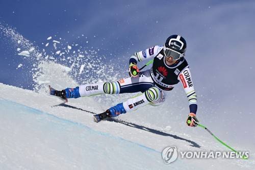 epa08957608 Ilka Stuhec of Slovenia in action during the women's Downhill race of the FIS Alpine Skiing World Cup in Crans-Montana, Switzerland, 22 January 2021. EPA/JEAN-CHRISTOPHE BOTT
