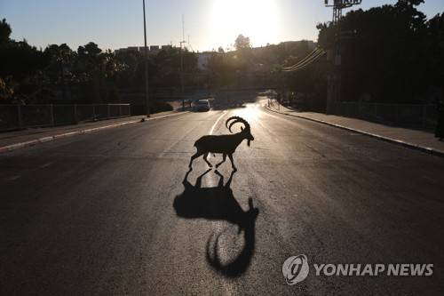 epaselect epa08957387 A Nubian ibex crosses an empty street during a national lockdown in Mitzpe Ramon, southern Israel, 22 January 2021. Although Israel is one of the first countries to have received vaccines and has so far vaccinated more then two million of its around nine million citizens, the rate of infection with the Sars-CoV-2 coronavirus, that causes the coronavirus disease (COVID-19), is rising drastically as Israel entered a full closure of two weeks. EPA/ABIR SULTAN