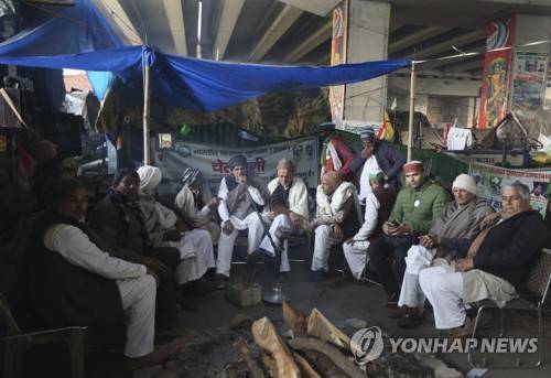Indian Farmers hold a meeting under a flyover as they continue to block a highway leading to Delhi in protest against new farm laws, at Delhi-Uttar Pradesh border, India, Friday, Jan. 22, 2021. Talks between protesting farmers’ leaders and the government ended abruptly in a stalemate on Friday with the agriculture minister saying he has nothing more to offer than suspending contentious agricultural laws for 18 months. The farmers’ organizations in a statement on Thursday said they can’t accept anything except the repeal of the three new laws. (AP Photo/Manish Swarup)