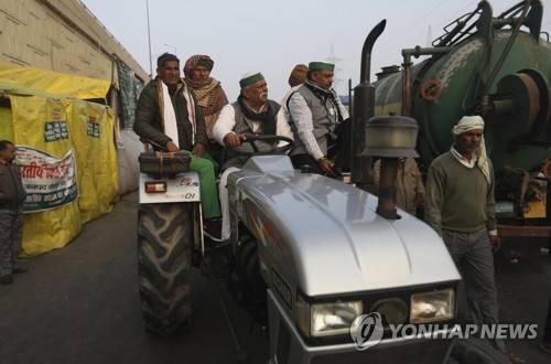 Indian Farmers arrive in a tractor for their tractor rally planned for Jan. 26 in protest against new farm laws, at Delhi-Uttar Pradesh border, India, Friday, Jan. 22, 2021. Talks between protesting farmers’ leaders and the government ended abruptly in a stalemate on Friday with the agriculture minister saying he has nothing more to offer than suspending contentious agricultural laws for 18 months. The farmers’ organizations in a statement on Thursday said they can’t accept anything except the repeal of the three new laws. (AP Photo/Manish Swarup)