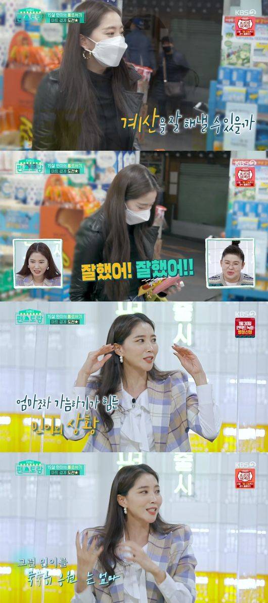이 날 오윤아는 아들 민이에게 마트에서 계산하는 미션을 줬고, 민이는 미션을 성공적으로 완수했다. 민이의 첫 도전에 '편스토랑' 식구들 역시 민이의 도전을 두근두근 떨리는 마음으로 지켜보며 응원했다.