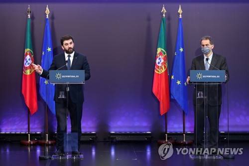 epa08957700 Portuguese Minister of Education Tiago Brandao Rodrigues (L), accompanied by Portuguese Minister of Science, Technology and Higher Education, Manuel Heitor (R) attend a press conference after an Informal Video Conference Meeting of EU Education Ministers under the Portuguese Presidency of the Council of the European Union (EU) in Lisbon, Portugal, 22 January 2021. The meeting was under the theme 'On the way to the Oporto Social Summit: the contribution of Education and Training' to discuss the contribution of Education to the realization of the European Pillar of Social Directors. EPA/ANTONIO PEDRO SANTOS