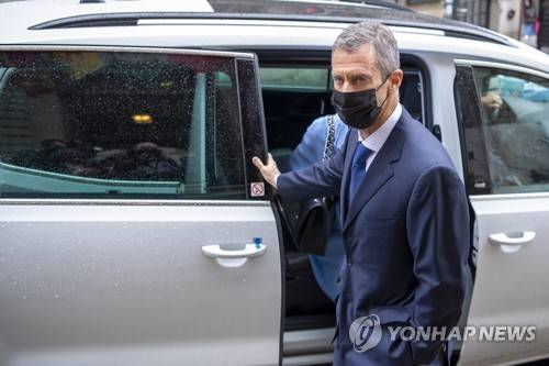 epa08957731 Israeli businessman and diamond-magnate, Beny Steinmetz, arrives to Geneva's courthouse for the reading of his verdict for alleged corruption of Guinean public officials and forgery documents, in Geneva, Switzerland, 22 January 2021. EPA/MARTIAL TREZZINI