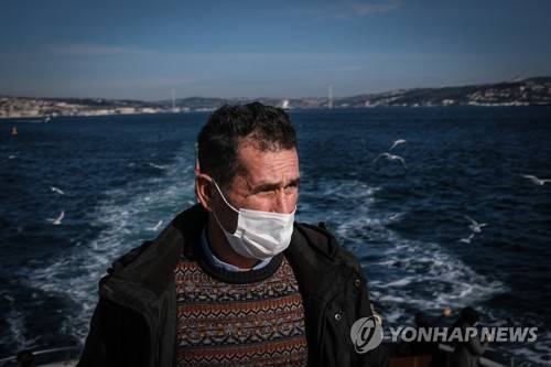 epa08957737 A man wearing face mask travel with ferry from Asia to Europe side, amid the ongoing coronavirus pandemic in Istanbul, Turkey, 22 January 2021. EPA/SEDAT SUNA