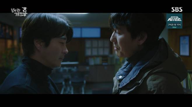 22일 오후 방송된 SBS '날아라 개천용'에서는 박태용(권상우 분)이 장윤석(정웅인 분)에게 진짜 검사가 되어 달라고 말했다.