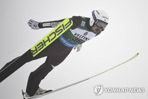 epa08957820 Yoshito Watabe of Japan in action during the Men's Ski Jumping competition of the FIS Nordic Combined PCR HS 130 World Cup in Lahti, Finland, 22 January 2021. EPA/KIMMO BRANDT