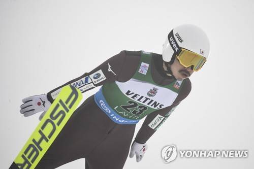 epa08957819 Hideaki Nagai of Japan in action during the Men's Ski Jumping competition of the FIS Nordic Combined PCR HS 130 World Cup in Lahti, Finland, 22 January 2021. EPA/KIMMO BRANDT