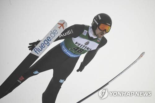 epa08957880 Fabian Riessle of Germany in action during the Men's Ski Jumping competition of the FIS Nordic Combined PCR HS 130 World Cup in Lahti, Finland, 22 January 2021. EPA/KIMMO BRANDT