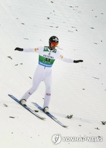epa08957919 Lukas Greiderer of Austria in action during the Men's Ski Jumping competition of the FIS Nordic Combined PCR HS 130 World Cup in Lahti, Finland, 22 January 2021. EPA/MAURI RATILAINEN