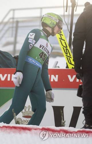 epa08957923 Ilkka Herola of Finland reacts during the Men's Ski Jumping competition of the FIS Nordic Combined PCR HS 130 World Cup in Lahti, Finland, 22 January 2021. EPA/MAURI RATILAINEN