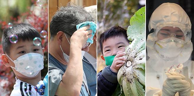 지난해 1월20일 우리나라에서 코로나19 확진자가 처음으로 발생한 뒤 1년이 흘렀다. 봄꽃 아래에서, 땀 흘리는 여름을 지나 추수하는 가을과 핫팩을 움켜쥔 겨울에도 우리는 마스크와 함께했다. 네 번의 계절이 바뀌도록 국내 확진자는 7만3115명, 사망자는 1283명(19일 0시 기준) 발생했고 그 기록은 여전히 진행형이다. 다시 새로운 계절이 오면 이 거대한 팬데믹이 끝나기를 고대해 본다. 한겨레 사진부