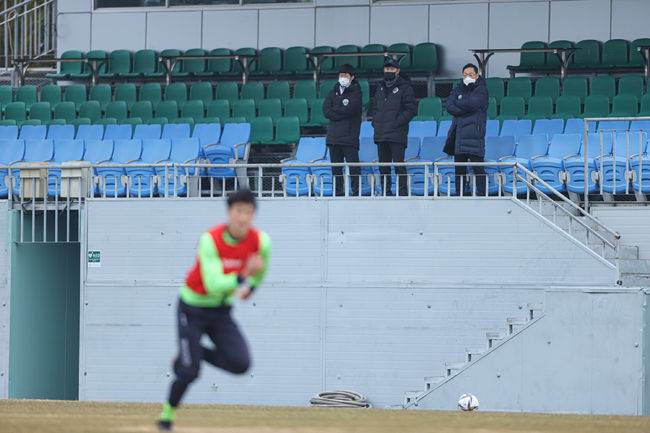 박 위원은 김상식 감독과 함께 선수들의 훈련을 지켜본 뒤 과거 대표팀에서 뛰었던 김보경과 대화를 나누기도 했다.
