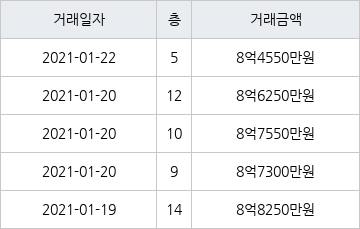 지난 2021년 1월 22일 같은 면적형인 5층 물건이 8억4550만원에 실거래된 것과 비교해 같은 가격이다.