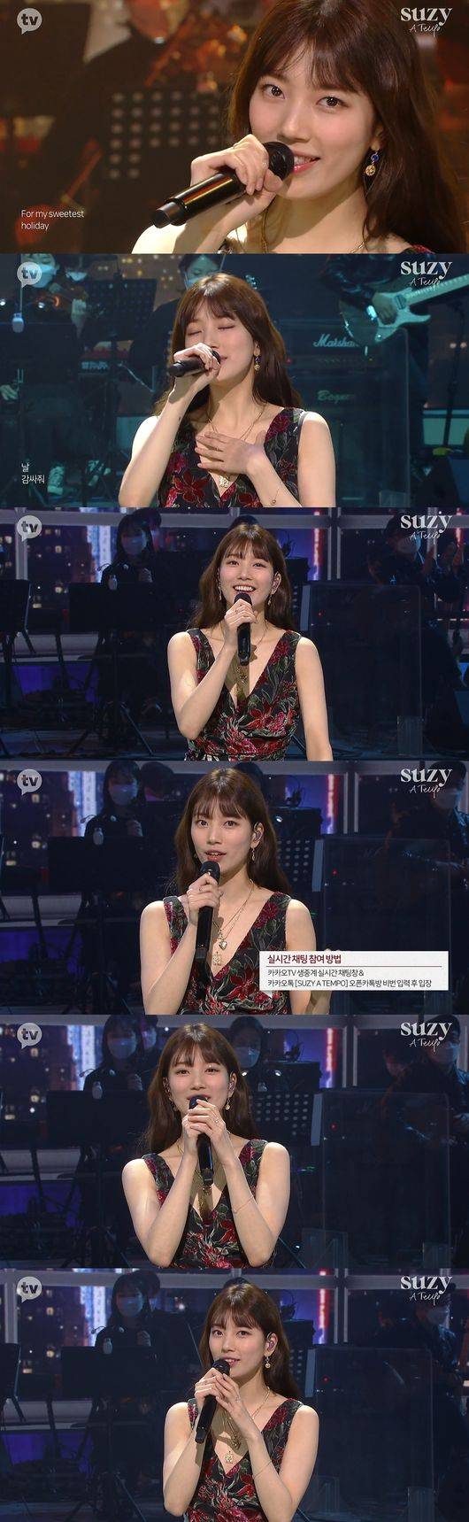 이날 수지는 'Holiday'를 부르며 팬서트의 문을 열었다. 수지는 "수지의 아 템포에 와주신 여러분들 진심으로 환경한다"라며 "특별하고 아름다운 날 여러분과 행복한 순간을 나누고 싶어서 준비했다"라고 인사했다.