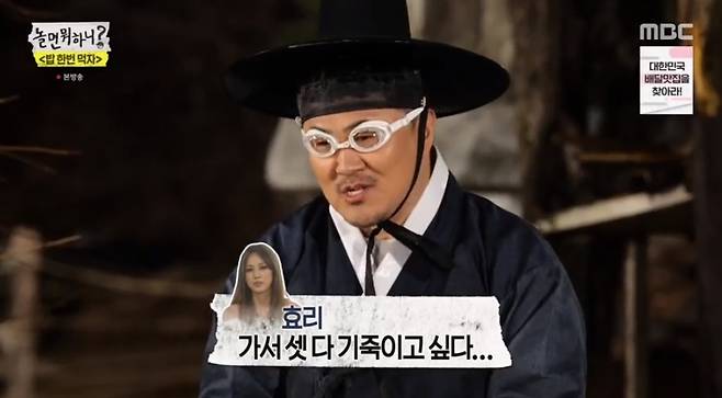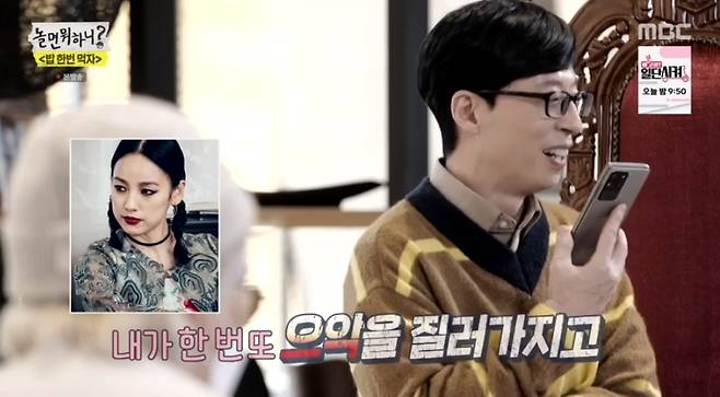 1월 23일 방송된 MBC '놀면 뭐하니'에서는 본캐 유재석과 김종민, 데프콘이 유저들과 함께한 '밥 한번 먹자' 라이브를 하는 모습이 공개됐다.