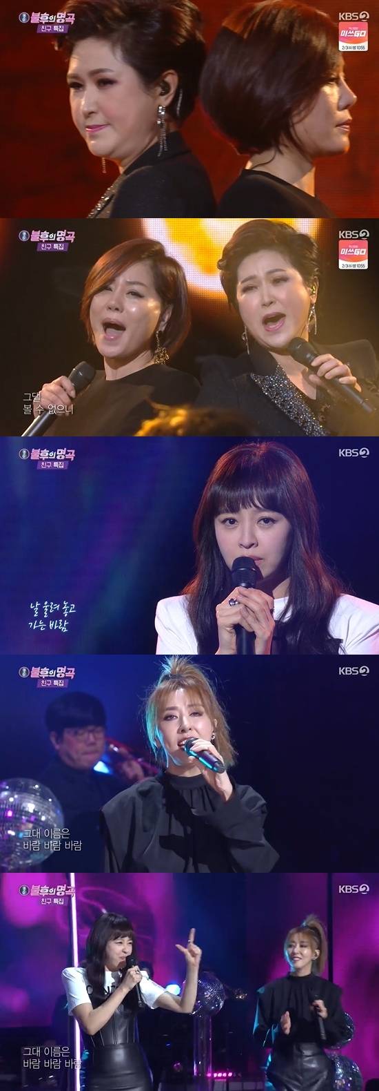 23일 방송된 KBS 2TV '불후의 명곡-전설을 노래하다'에서는 친구 특집으로 하은&지플랫, 이봉근&안예은, 김용임&한혜진, 김완선&강성연, 슬리피&딘딘, 신유&김용진이 등장했다.